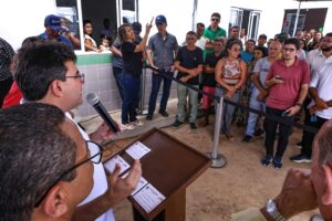 Entrega de asfaltamento e kit creche em Várzea Branca