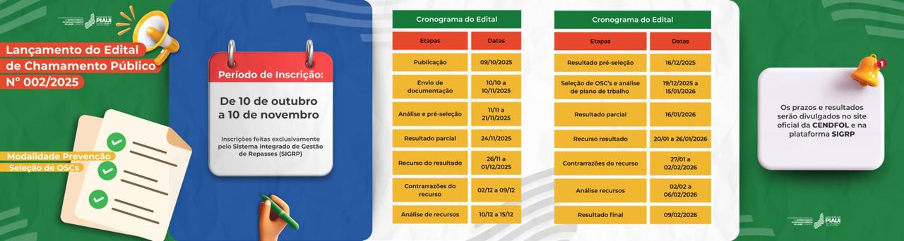 Simone também ressaltou que as organizações terão 30 dias para apresentar seus planos de trabalho, que serão analisados pela equipe técnica da Cendfol. “Nosso compromisso é avaliar com responsabilidade cada proposta, verificando se ela está de acordo com a estrutura da instituição e com as metas estabelecidas”, completou Pereira.