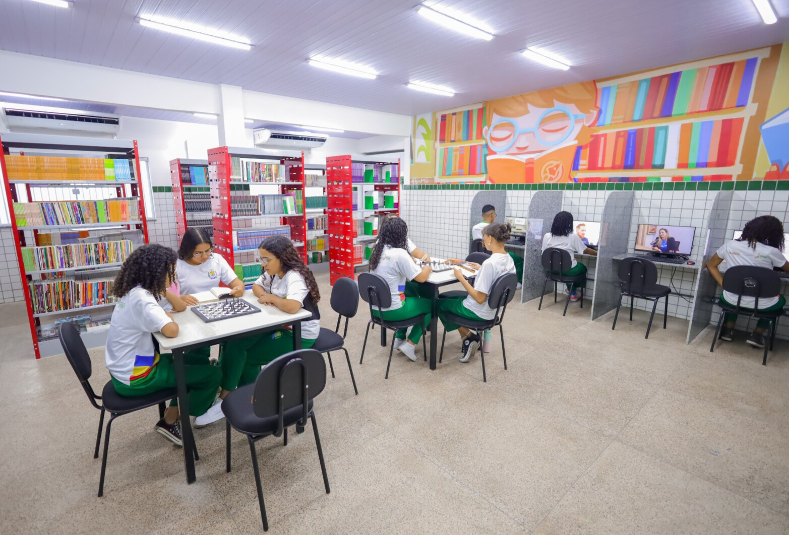 Atualmente, 77,4% das escolas já estão climatizadas, o que representa 452 unidades da rede estadual. O trabalho faz parte de um plano que prevê a universalização da climatização nas escolas até o final de 2026.