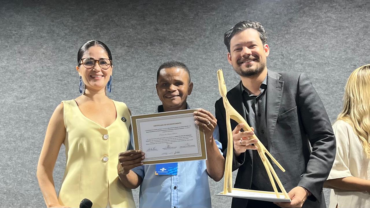 Entre os premiados, o artesão Dimas Sousa, que também destacou a importância do reconhecimento para sua trajetória. Ele, que aprendeu o ofício ainda jovem com o pai, ressaltou o valor afetivo e simbólico do certificado recebido. “Essa arte veio do meu pai, comecei ainda muito novo e me apaixonei pelo que faço. Hoje trabalho com orgulho, amor e respeito à natureza. Esse certificado tem um valor muito grande para mim, dedico ao meu pai, por tudo que me ensinou. Não tem dinheiro que pague esse reconhecimento e o carinho com que fui recebido aqui”, afirmou.