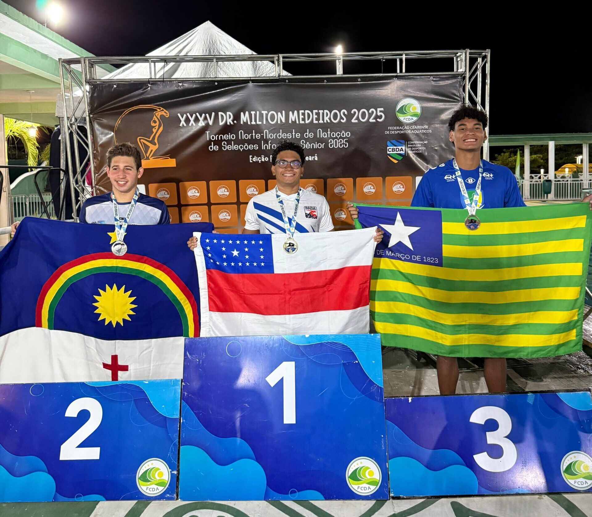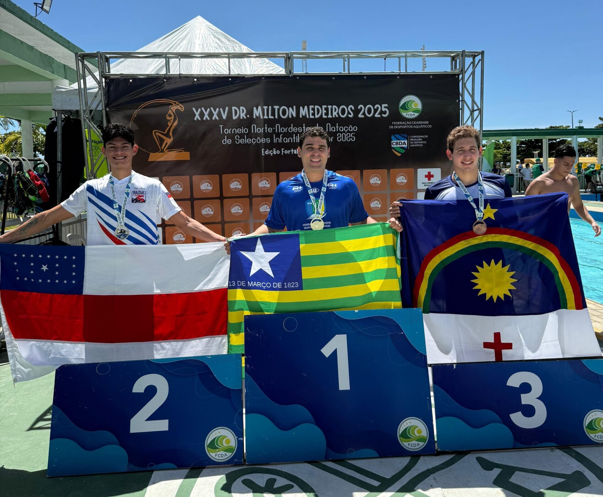 Atletas da natação piauiense participaram do 35º Troféu Milton Medeiros, realizado de 17 a 19 de julho de 2025, em Fortaleza (CE). A delegação, que contou com o apoio do Governo do Estado, por meio da Secretaria dos Esportes (Secepi), conquistou cinco medalhas em provas individuais, reafirmando o potencial do estado no desporto aquático regional.