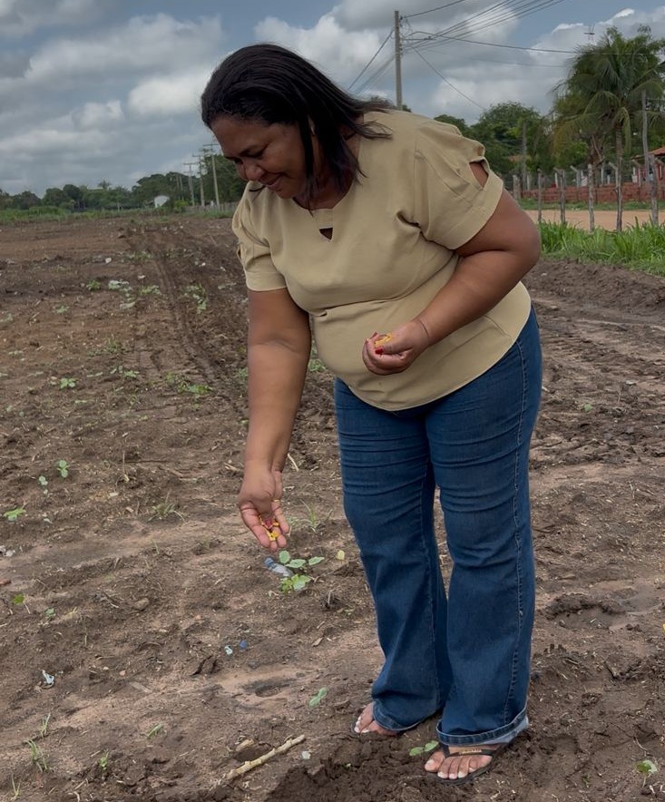 Agricultora Jesus Alves no plantio de sementes (Foto: Camila Silva)