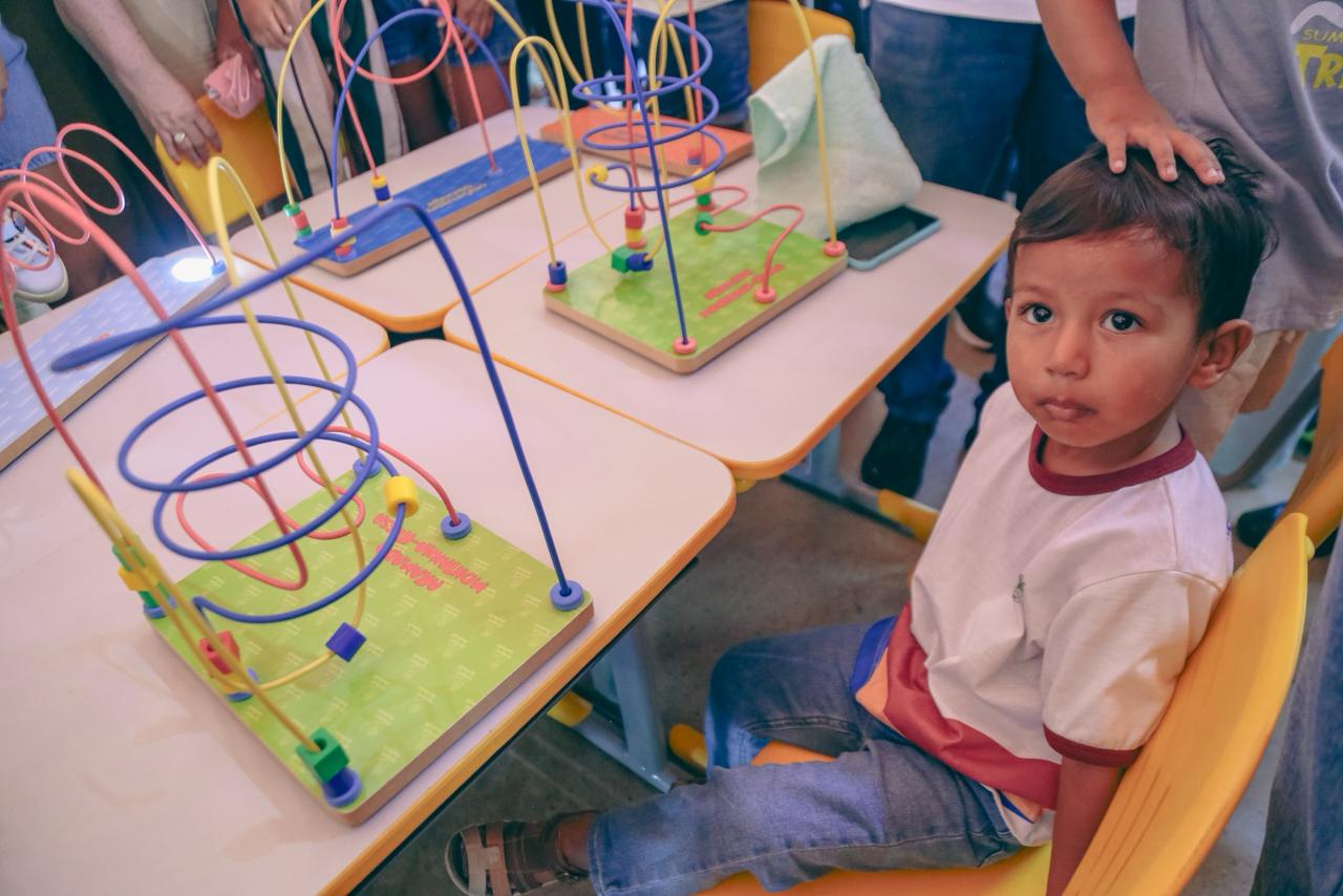 A creche municipal Luiza de Lacerda Viana recebeu um kit com itens essenciais para estruturar salas de aula de educação infantil, incluindo mesas e cadeiras infantis, berços, colchonetes, armários, tatames, instrumentos musicais, brinquedos pedagógicos, túnel lúdico, conjuntos aramados e bebedouros. O objetivo é garantir um ambiente seguro, lúdico e adequado ao desenvolvimento integral na primeira infância.