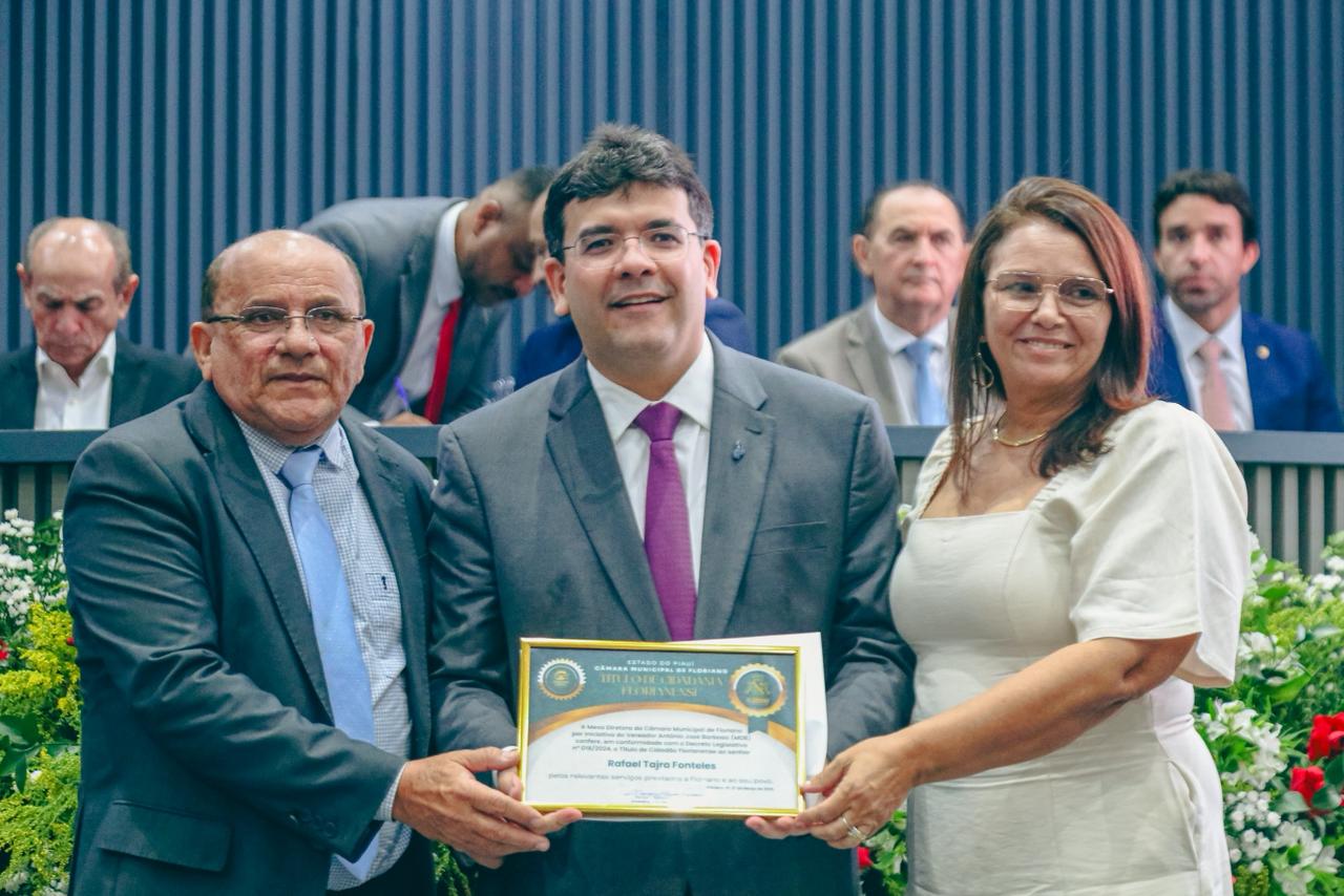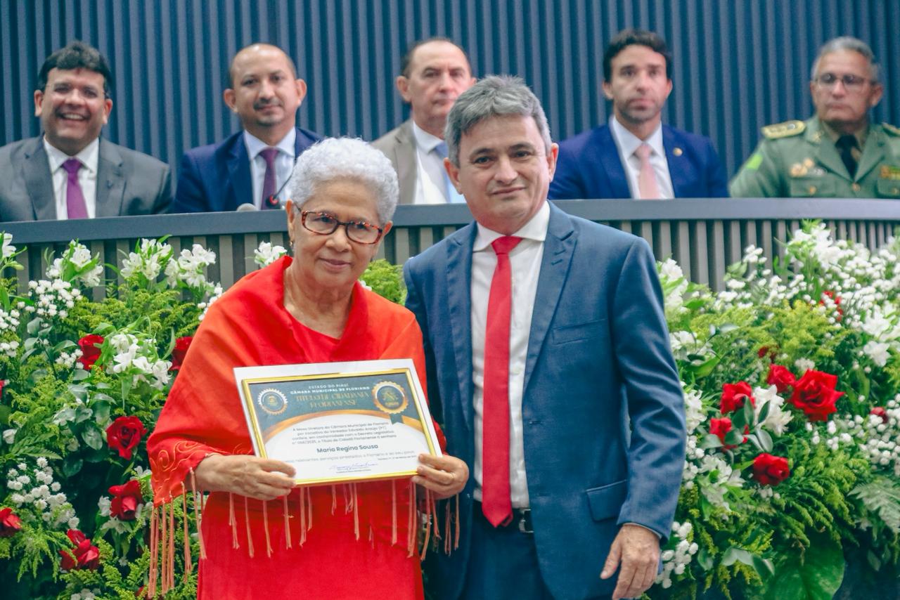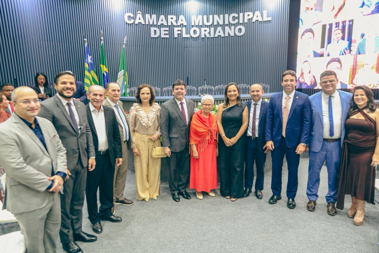 O governador Rafael Fonteles foi homenageado, na noite dessa sexta-feira (27), com o Título de Cidadania Florianense, concedido em sessão solene realizada na Câmara Municipal de Floriano. Também receberam o título, a ex-governadora Regina Sousa, o desembargador Erivan Lopes, o presidente da OAB-PI, Raimundo Júnior, e o secretario de Estado da Comunicação, Marcelo Nolleto, além de outras autoridades e personalidades que contribuíram, de forma significativa, para o bem-estar coletivo e o desenvolvimento de Floriano.