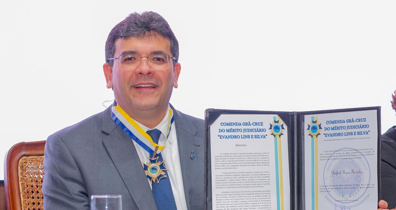 A Comenda Grã-Cruz do Mérito Judiciário “Evandro Lins e Silva” é concedida a autoridades e personalidades que se destacam pela contribuição ao fortalecimento da Justiça e das instituições democráticas. Na edição de 2026, o governador Rafael Fonteles foi um dos homenageados.