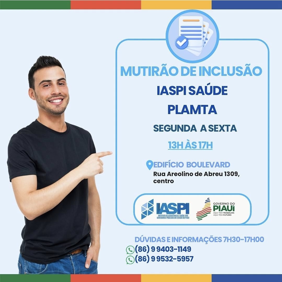 O Instituto de Assistência à Saúde dos Servidores Públicos do Estado do Piauí (Iaspi), com o objetivo de acelerar o número de processos de inclusão no Iaspi Saúde e Plamta, vai realizar, a partir da próxima semana, um mutirão para a realização do processo de perícia.