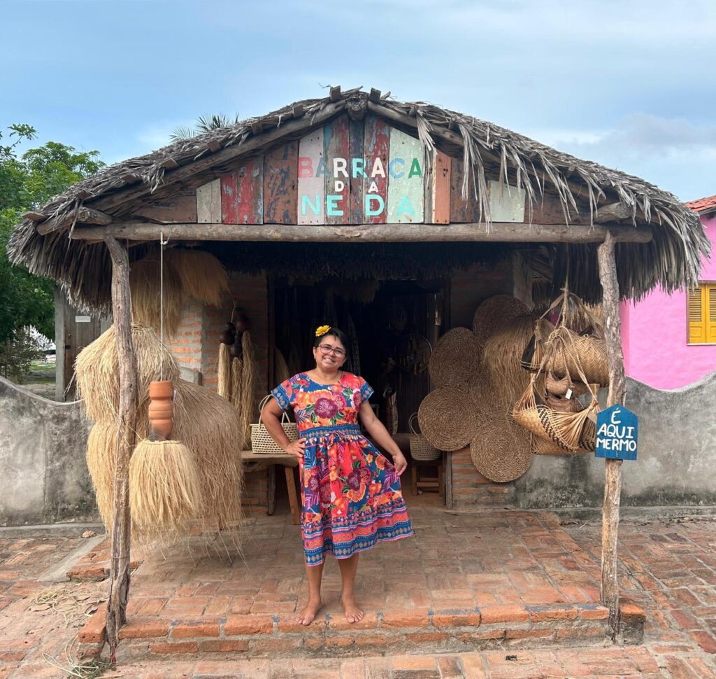 Em Cajueiro da Praia, no litoral do Piauí, a artesã Rosineuda Lopes, conhecida como Nêda, transforma, há mais de 10 anos, materiais naturais e resíduos do mar em peças artesanais que garantem o sustento próprio e de outras famílias. A produção ocorre na varanda de casa, embaixo de um cajueiro, onde ela e a família confeccionam as peças, contribuindo para a geração de renda e valorização da cultura local.