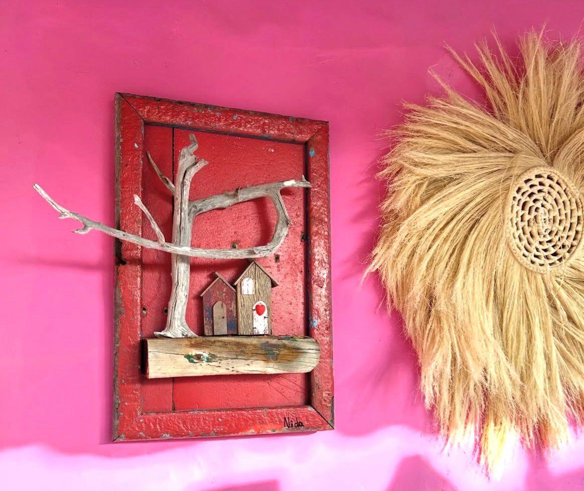 Uma das suas principais produções são as famosas “vilinhas”, pequenas casas feitas com restos de canoas e madeiras do mar, que retratam o cotidiano da comunidade e surgiram a partir de uma necessidade pessoal. “Foi para decorar o quarto da minha filha quando ela era criança. Eu não tinha dinheiro pra comprar os ursinhos e bonecas que enfeita o quarto das crianças, então eu fazia as casinhas com o resto de madeira que sobrava da marcenaria do meu esposo, e deu tudo certo. Hoje são muito procuradas”, relata a artesã.