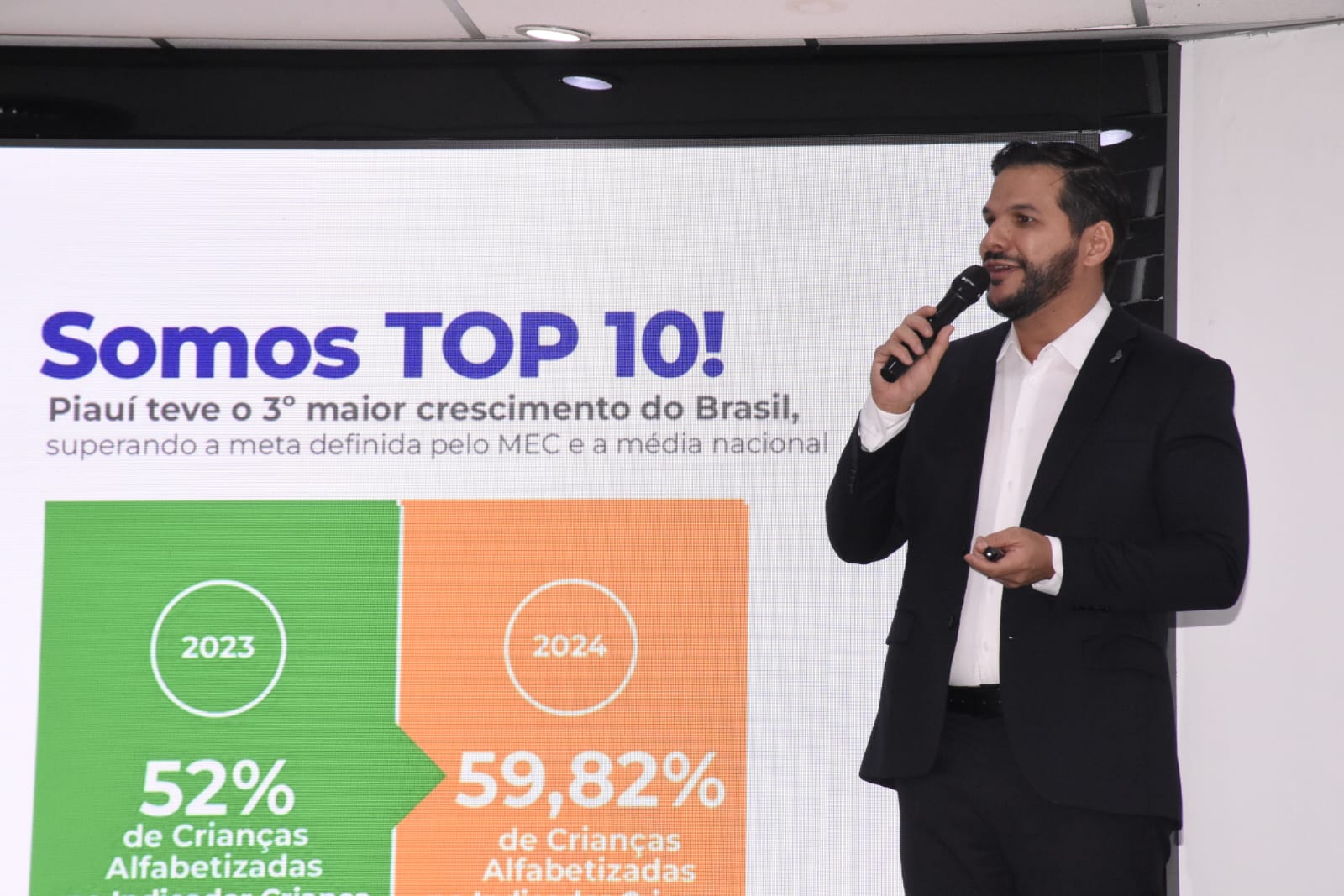O secretário Washington Bandeira apresentou os avanços da educação no Piauí, com destaque para a expansão das escolas de tempo integral, a adoção do ensino de inteligência artificial e programas de incentivo à inovação, como o Seduckathon, que oferecem aos alunos premiados imersões em centros de referência em países como Portugal, Estados Unidos, China, Singapura e Alemanha.
