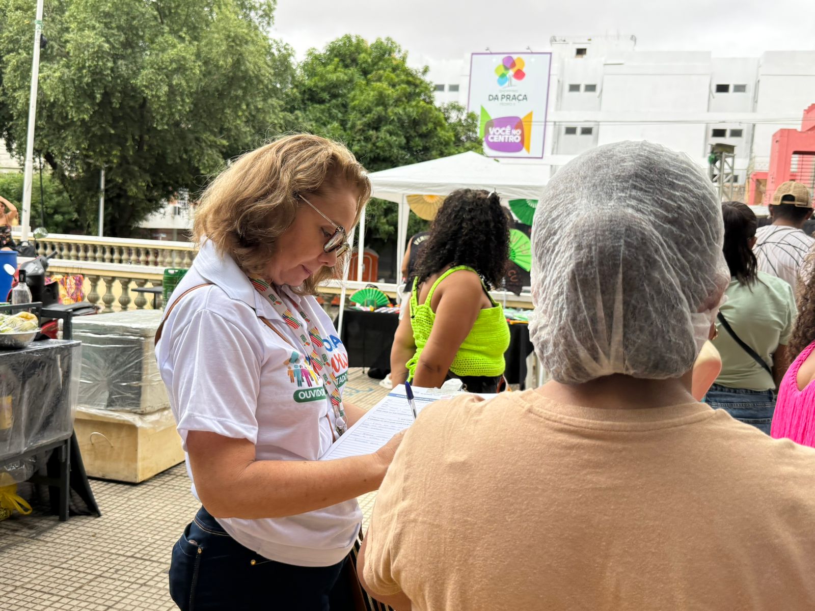Ação levou atendimento direto à população durante a Feira na Praça, na Praça Pedro II, fortalecendo a escuta ativa e a participação social.