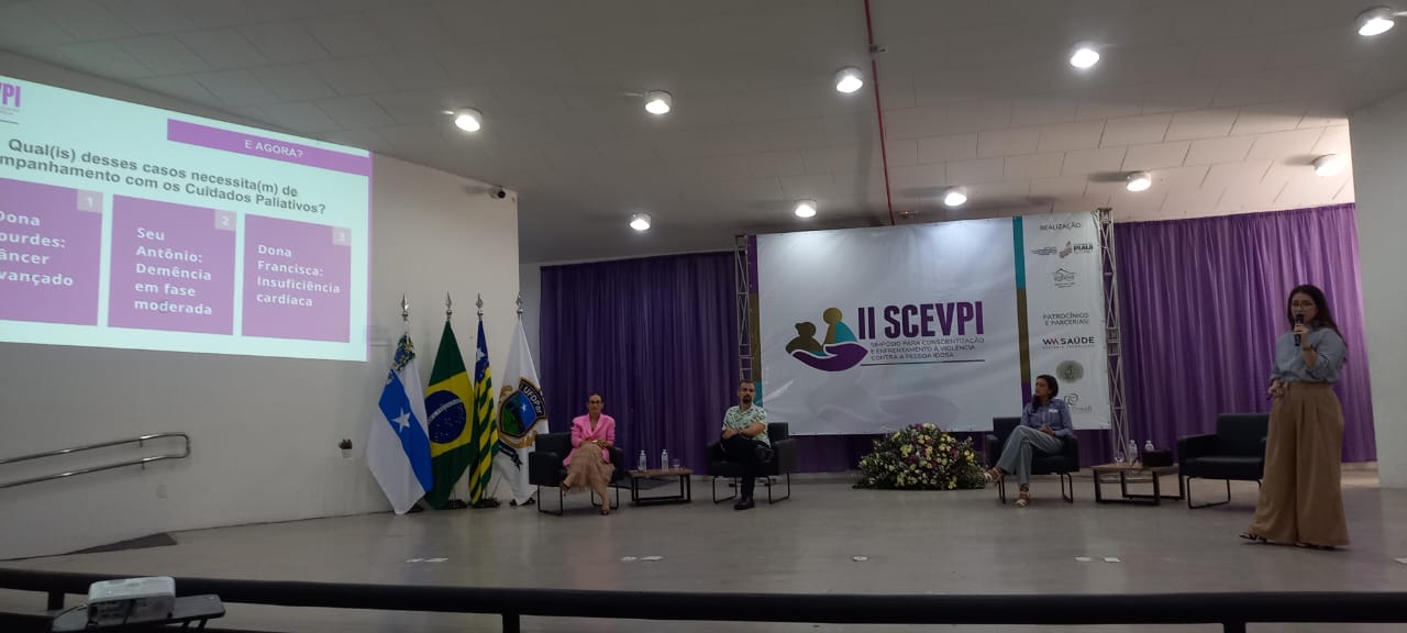 Em seguida, a defensora pública Sara Miranda abordou o tema “Direitos da Pessoa Idosa”, destacando os instrumentos legais e os avanços promovidos pelo Estatuto da Pessoa Idosa. Na sequência, ocorreu o debate “Cuidados Paliativos – conceitos, escolha e espiritualidade”, que discutiu os cuidados humanizados no fim da vida. O assunto foi abordado pela geriatra Giovana Paz, o médico da família Mauro Mendes, a oncologista Dandara Cavalcante e mediado pela enfermeira Tamires Ferreira.