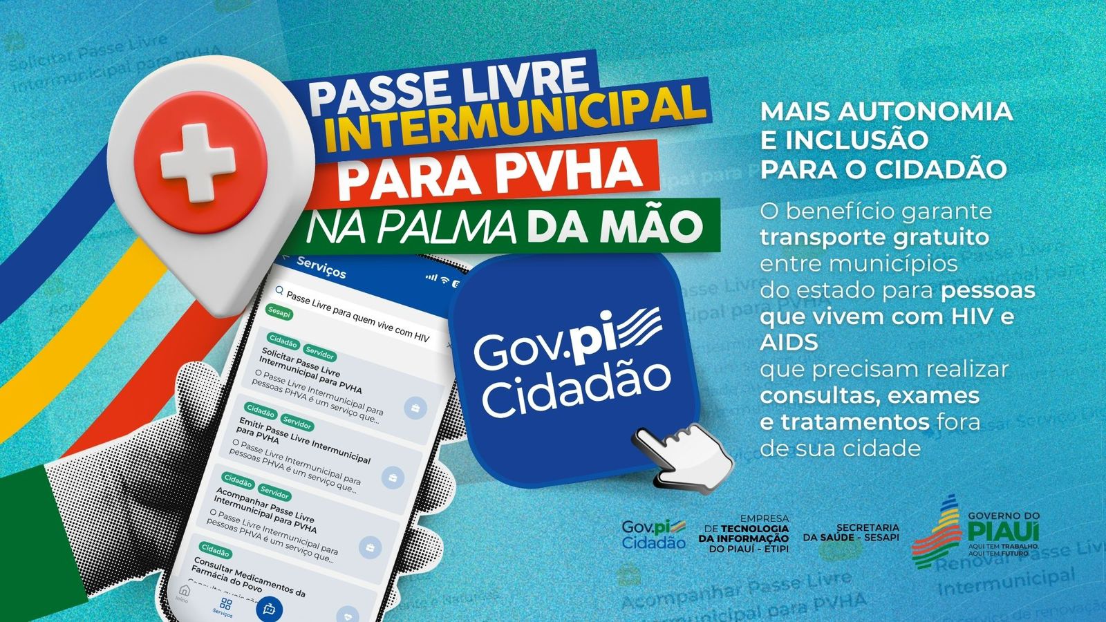 A tecnologia piauiense segue avançando como ferramenta de inclusão social. A plataforma Gov.pi Cidadão passou a ofertar serviços digitais voltados às pessoas vivendo com HIV/Aids (PVHA), entre eles a solicitação do Passe Livre Intermunicipal, que garante passagem gratuita nos ônibus intermunicipais do Estado.