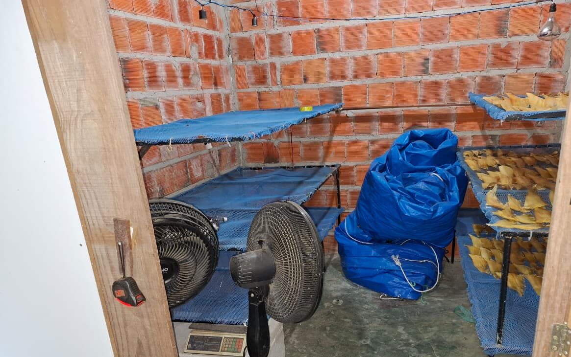 A ação teve início após denúncias de fortes odores e movimentações suspeitas durante a madrugada no local. Durante a vistoria, os agentes flagraram dois homens tentando fugir pulando o muro da residência. Após abordagem, eles autorizaram a entrada parcial da equipe de fiscalização, que encontrou grande quantidade de barbatanas.