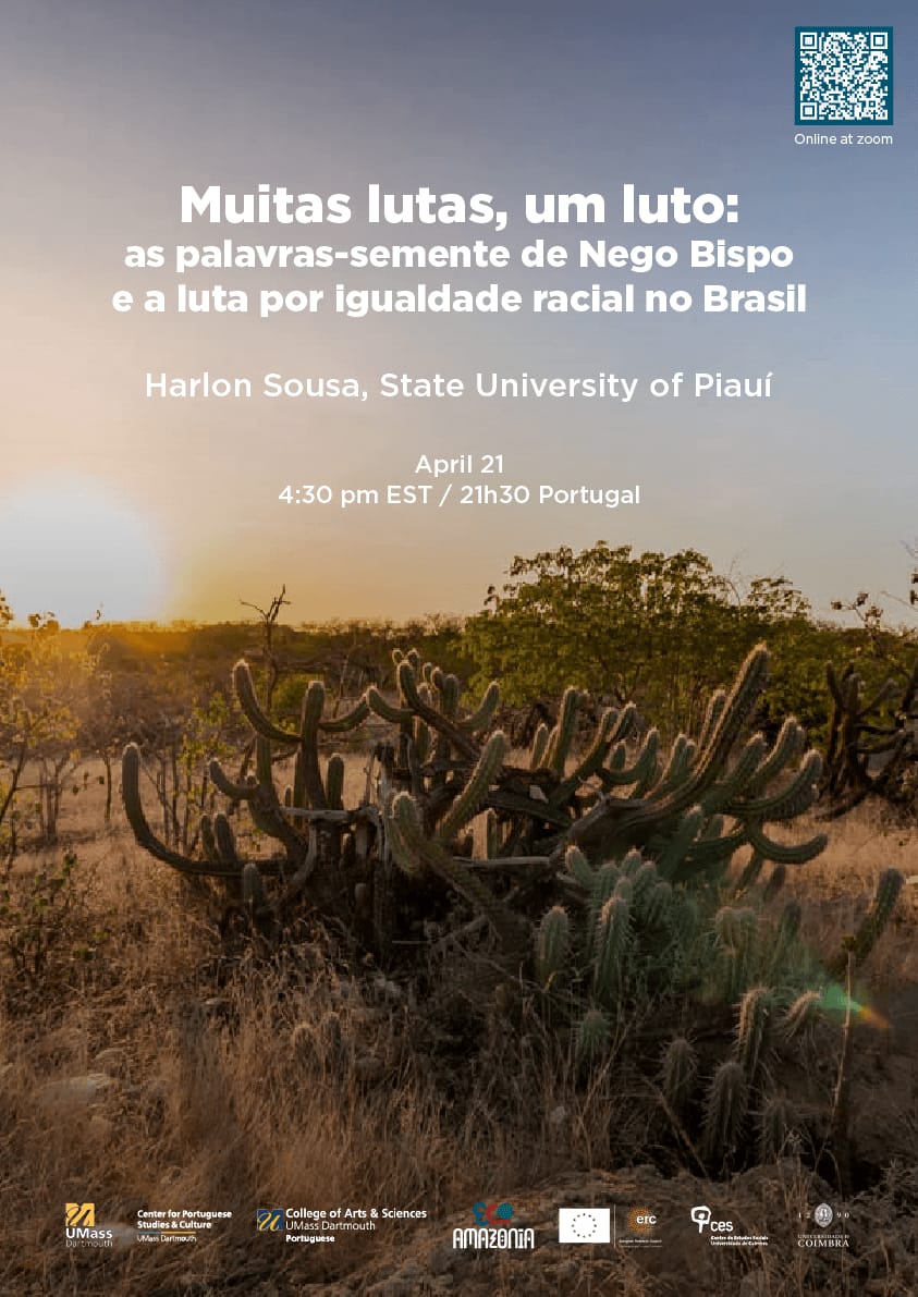 O professor do curso de Letras/Português da Universidade Estadual do Piauí (Uespi), em Oeiras, Harlon Lacerda, participará, no próximo dia 21 de abril, de uma conferência internacional promovida pela Universidade de Massachusetts, nos Estados Unidos. Na ocasião, ele ministrará a palestra “Muitas lutas, um luto: as palavras-semente de Nego Bispo e a luta por igualdade racial no Brasil”, que será realizada de forma online e gratuita, às 17h30 (horário de Brasília), com acesso via Zoom por meio do QR Code disponível no card de divulgação.