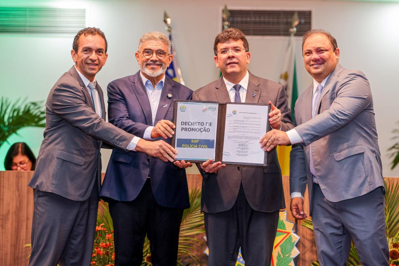 A solenidade celebrou o Dia da Polícia Civil, comemorado em 21 de abril, e reuniu servidores, familiares e autoridades no auditório do Tribunal Regional do Trabalho da 22ª Região. Durante o evento, o Rafael Fonteles também assinou decreto que formaliza as promoções.