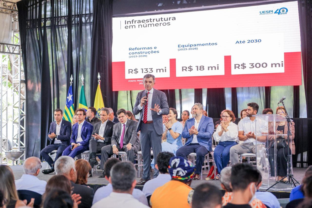 Na ocasião, governador ressaltou que os investimentos na Uespi vão além da infraestrutura e reforçou que nenhum campus pode manter disciplinas sem professor. Ele também anunciou a nomeação de mais 47 docentes efetivos, o que elevará o quadro da instituição para mais de mil professores. Segundo ele, a universidade vive um momento de expansão com qualidade no ensino, na pesquisa e na extensão.