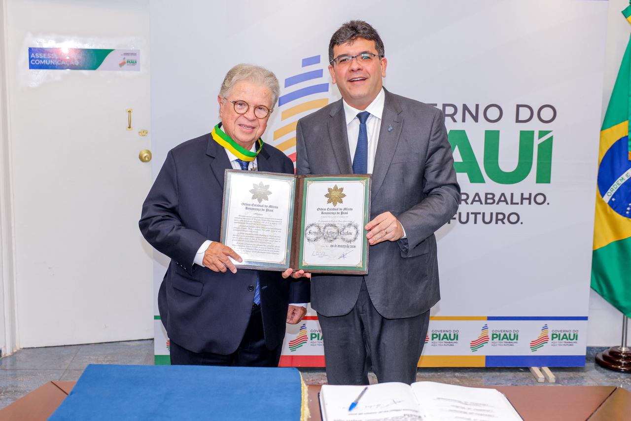 O governador Rafael Fonteles realizou, nesta sexta-feira (6), a Outorga da medalha do Mérito Renascença, no Grau Comendador, ao médico cardiologista Fernando Lucchese. Esta é a mais alta comenda do Piauí, destinada a homenagear personalidades e instituições, por suas relevantes contribuições para o Estado.
