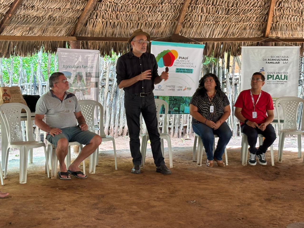 A Secretaria da Agricultura Familiar (SAF) participou, nesta quarta-feira (18), de uma reunião com indígenas da comunidade Nazaré, no município de Lagoa de São Francisco, para apresentar detalhes do projeto Piauí: Pilares de Crescimento e Inclusão Social II. O encontro reuniu membros da Associação dos Povos Indígenas Tabajara e Tapuio-Itamaraty, que já foram beneficiados por ações anteriores da iniciativa.