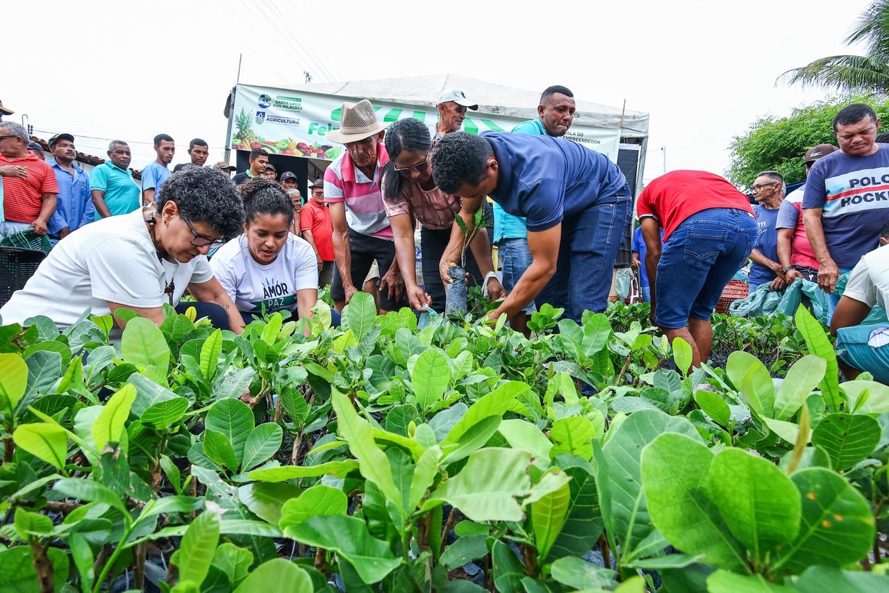 A Secretaria da Agricultura Familiar (SAF) realizou, neste domingo (1º), a entrega de ,il mudas de caju a agricultores familiares do município de Santa Cruz dos Milagres. A ação ocorreu durante a Feira da Agricultura Familiar, realizada na praça central da cidade, e vai beneficiar 100 agricultoras e agricultores familiares do município.