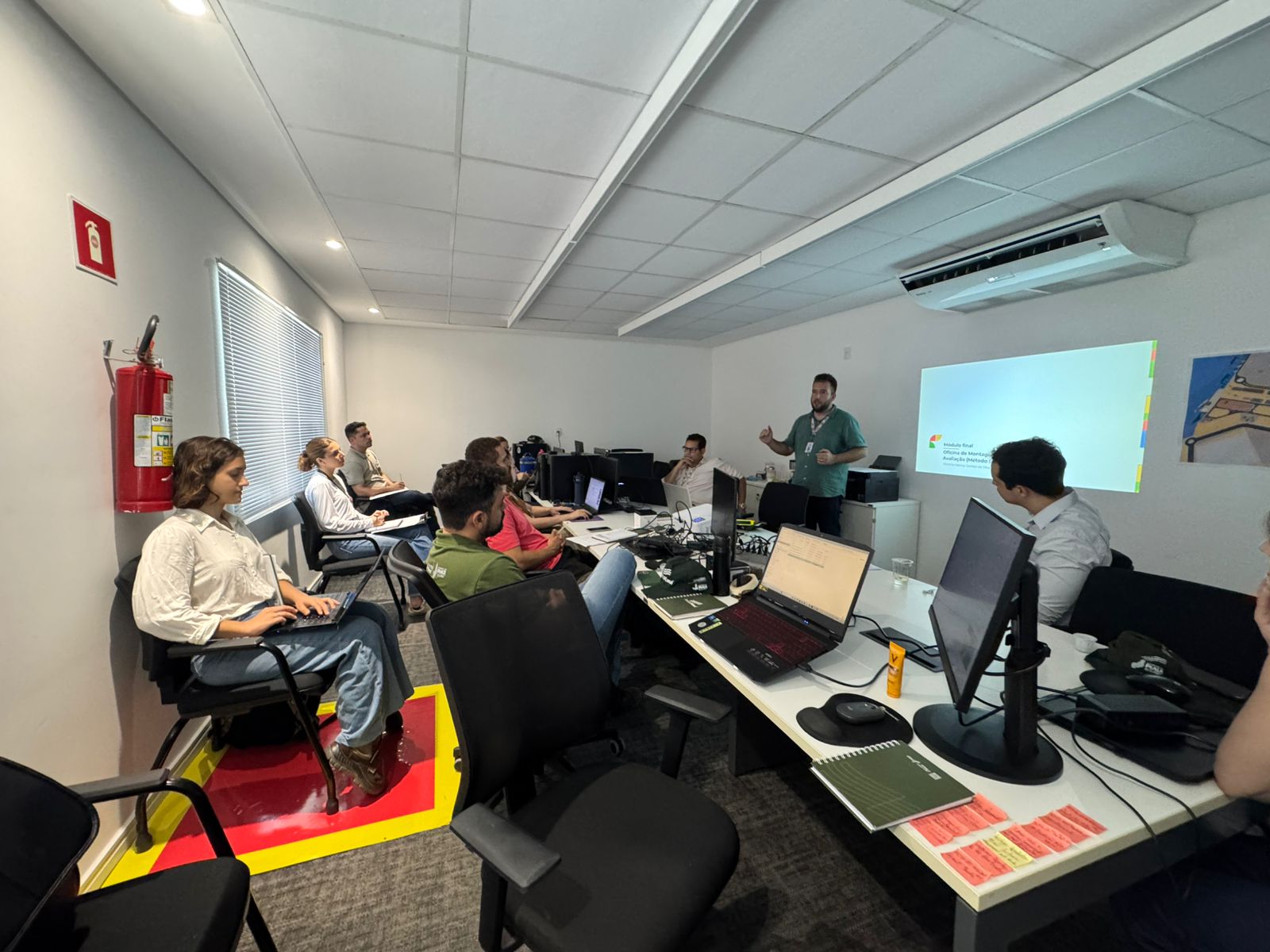 O curso teve carga horária de 20h, dividida entre aulas teóricas e práticas, e contou com quatro módulos que abordaram os fundamentos da avaliação imobiliária, métodos de avaliação, levantamento de dados e vistoria. No final do curso, cada participante elaborou um laudo simplificado utilizando o Método Evolutivo, com base nos dados coletados em campo e no estudo de mercado orientado durante as aulas.
