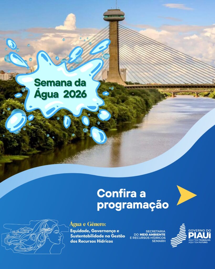 Em alusão ao Dia Mundial da Água, celebrado neste domingo (22), a Secretaria do Meio Ambiente e Recursos Hídricos do Piauí (Semarh) realiza, de 23 a 27 de março, a Semana da Água 2026. Com o tema “Água e gênero: equidade, governança e sustentabilidade na gestão dos recursos hídricos”. Construindo um futuro com equidade”, a programação reúne debates, minicursos, reuniões técnicas e ações educativas em diferentes espaços de Teresina.