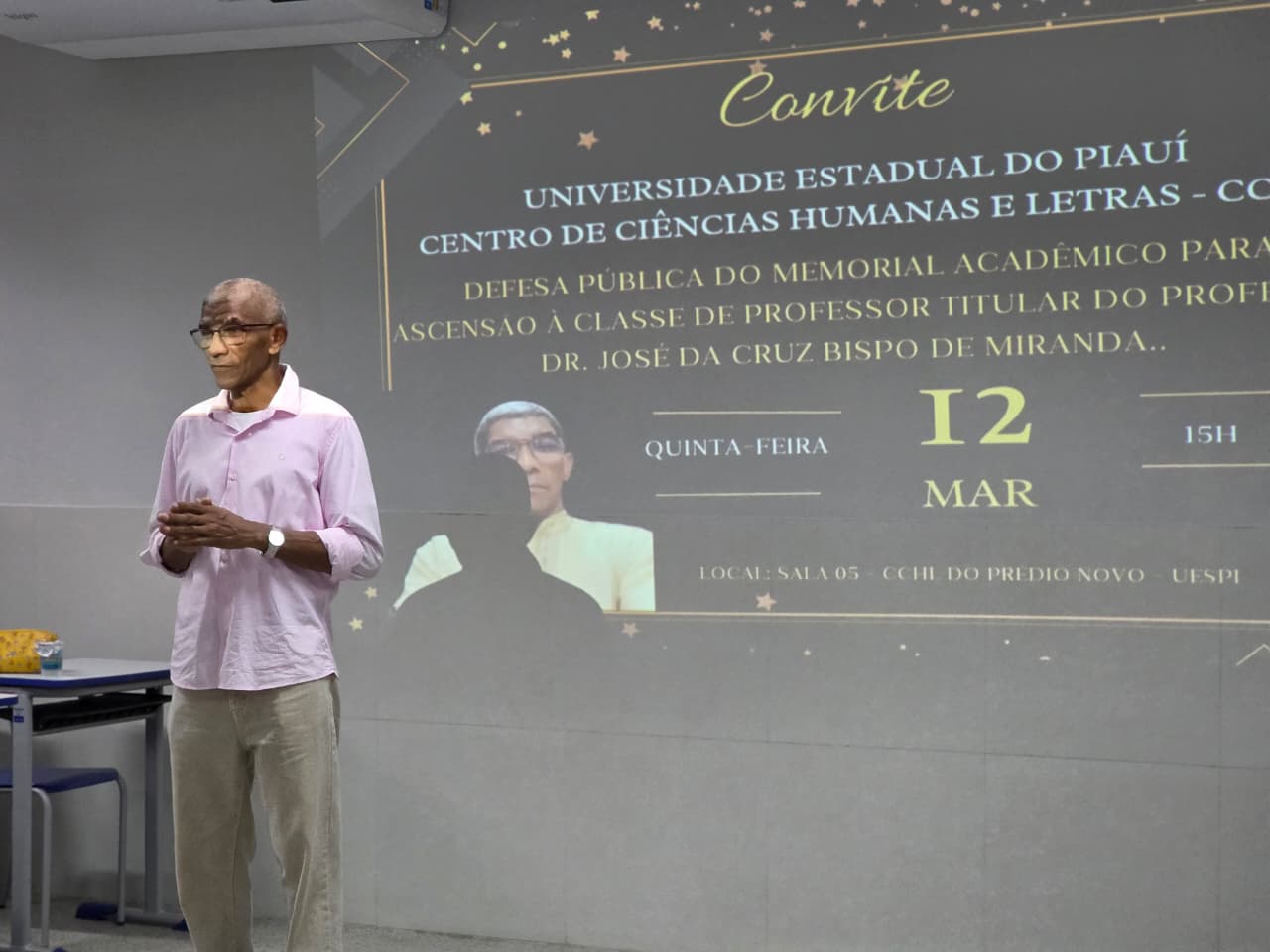 A Universidade Estadual do Piauí (Uespi) realizou, na última quinta-feira (12), a primeira banca para promoção à classe de professor titular da instituição. O professor doutor José da Cruz Bispo de Miranda foi aprovado como o primeiro professor titular da história da Uespi em 40 anos, a classe mais alta da carreira docente da instituição. A sessão pública ocorreu no Centro de Ciências Humanas e Letras (CCHL), onde o docente apresentou seu memorial acadêmico, reunindo a trajetória construída ao longo de décadas de atuação no ensino, na pesquisa e na extensão.