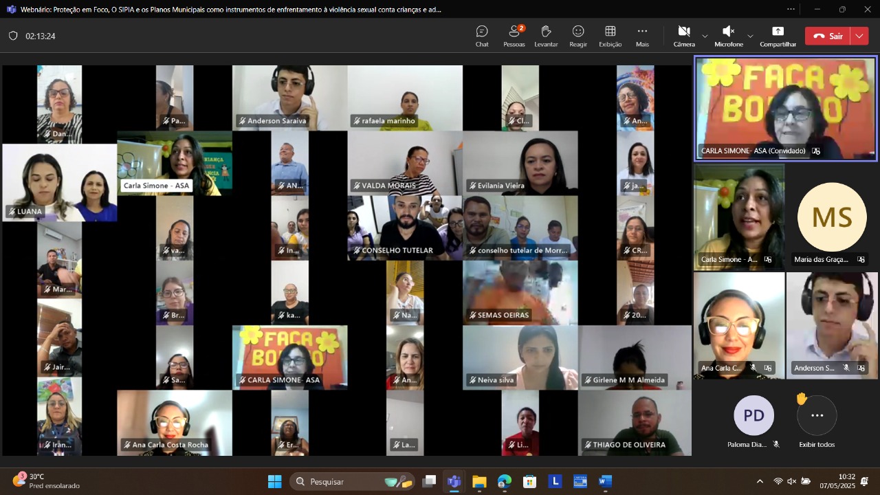 Segundo a diretora de Proteção Social Especial, Graça Silva, o objetivo do webinário foi discutir os procedimentos para atualização dos planos municipais e estadual de enfrentamento à exploração sexual de crianças e adolescentes.